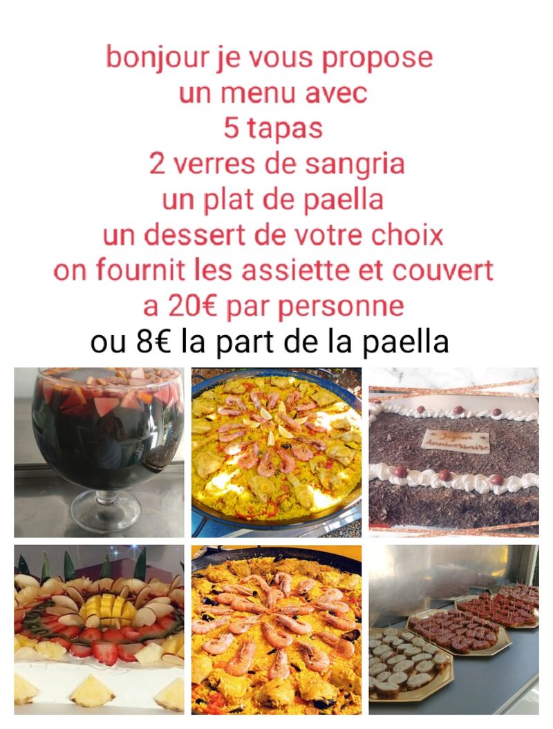 Envie d une VERITABLE PAELLA VALENCIANA, n'hésitez pas à passer commande pour baptêmes, anniversaires, mariages ou pour tous autres évènements !!